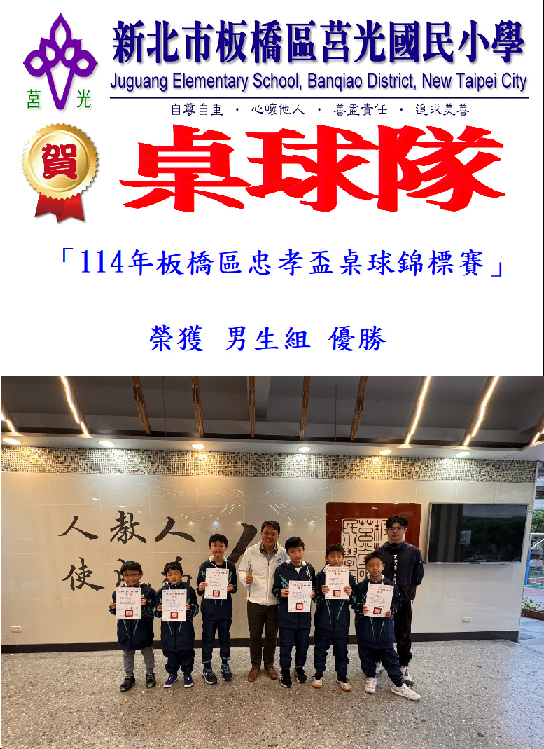 恭喜本校桌球隊參加「114年新北市忠孝盃桌球錦標賽」